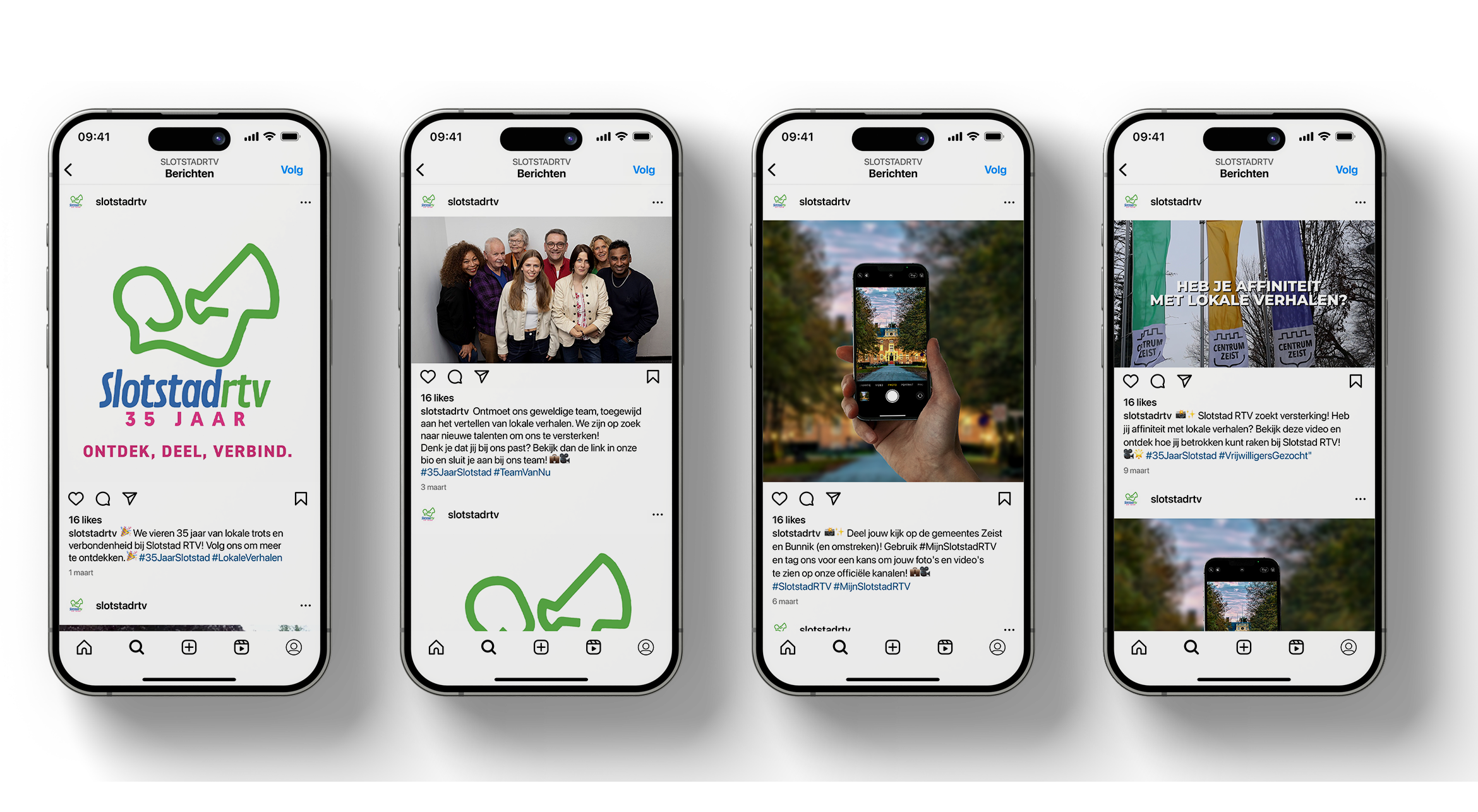In my final year at Nimeto, I had the opportunity to work on a project for the local broadcaster Slotstad RTV. The assignment focused on celebrating the station’s 35th anniversary and consisted of several parts: creating a social media campaign, developing a new slogan, producing a recruitment video to inspire new volunteers, designing a training plan to guide them in becoming neighborhood reporters, and creating a fresh station call.